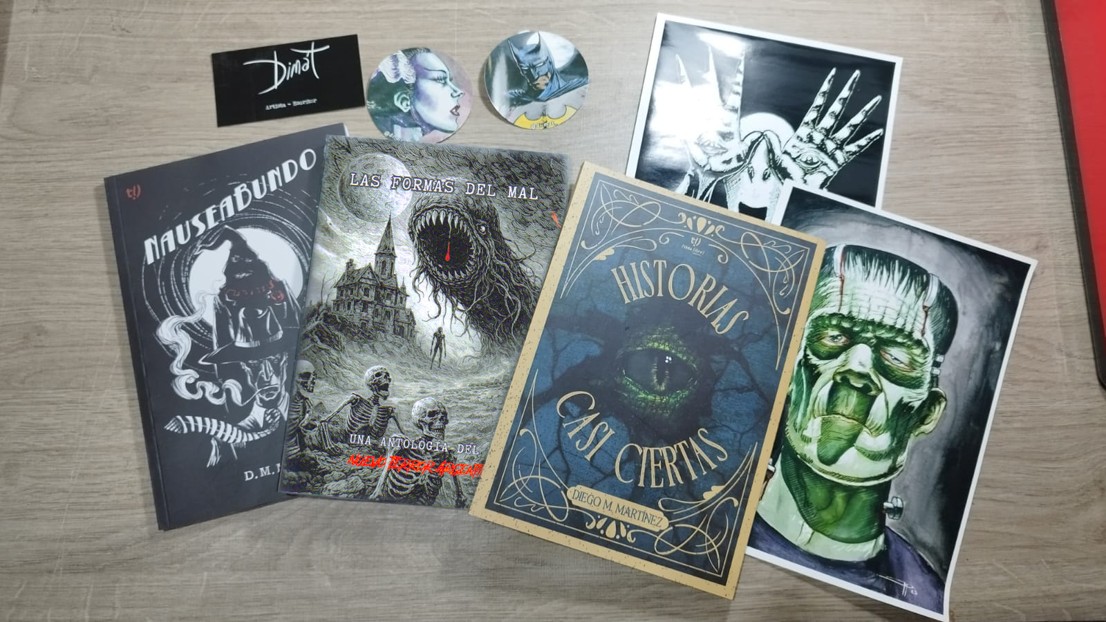 Llevate "Historias Casi Ciertas", "Nauseabundo Novela grafica Libro 1", Y la antologia de varios autores "Las Formas del Mal" mas 2 ilustraciones al azar tamaño A5 de la coleccion monstruos clasicos listas para enmarcar + merch de regalo por este increible precio y con envio gratis a todo el pais!